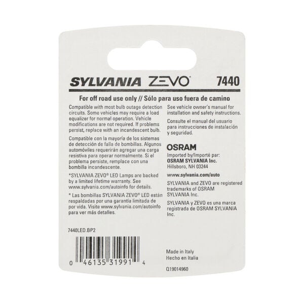 SYLVANIA 7440 WHITE ZEVO LED Mini, 2 Pack
